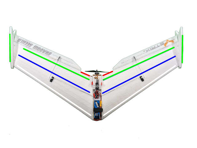 These are ready to glue right in to the pre-made slots on the plane. Back to back strips for the wings allow one color to shine brightly on the ground while another color makes the top of the wing glow. All connectors, soldering, and heat shrink are completed for you using gray/white wire to blend in with the wing colors.